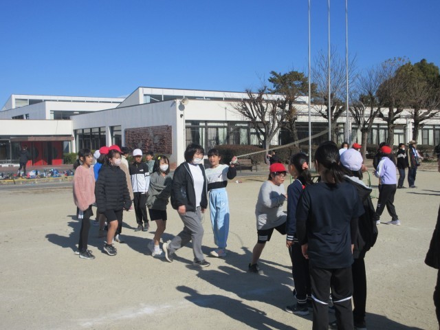 体育は、なわとびでした。グラウンドは、立っているだけでも飛ばされそうな恐怖の強風が吹き荒れるコンディション。普通なら「今日は寒いから中で……」となりそうなところですが、そこはさすが5年生。「子どもは風の子」という言葉は、彼らのためにあるのかもしれません。風の中でも、子どもたちは懸命に縄を回し、跳び続けていました。後半に行った長縄では、寒さを吹き飛ばすような笑顔と歓声があふれていました。みんなで息を合わせて跳んでいると、心も体もポカポカしてくるようです。