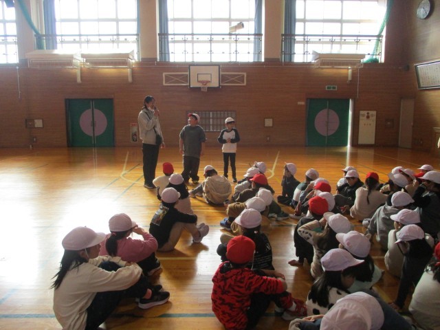 氷鬼をしたり、大繩をしたり、先生からの話を聞いたり、今日の感想を伝えあったりしました。