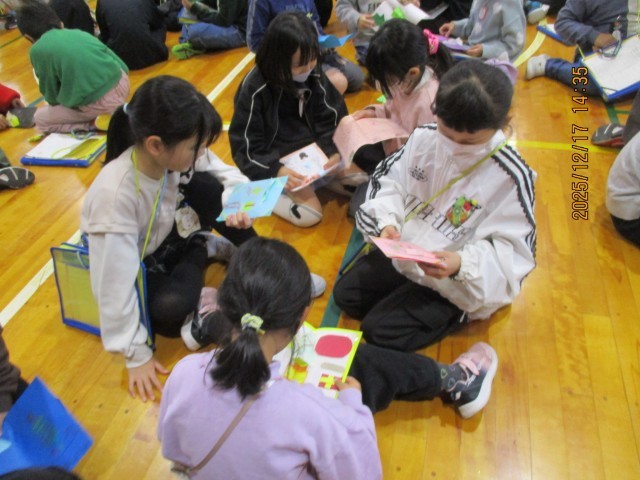 ペアクリスマスのつどいを行いました。実行委員がこの日のために、楽しい企画や劇、景品を用意してきました。2年生も4年生もとても楽しんでいました。クリスマスカード交換では、自然に笑みがこぼれていました。より絆が深まった会となりました。