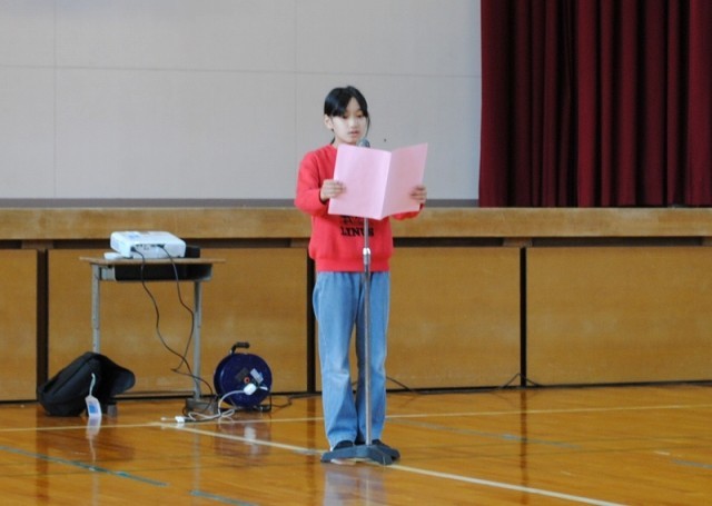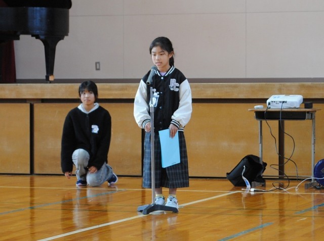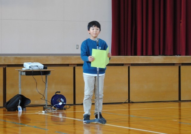 各学年の代表者が2学期にがんばったことや、成果を発表しました。