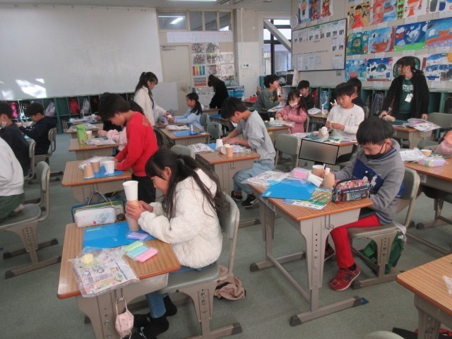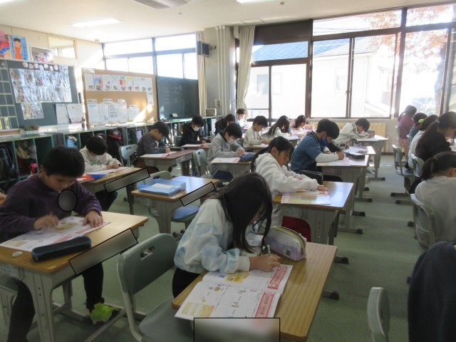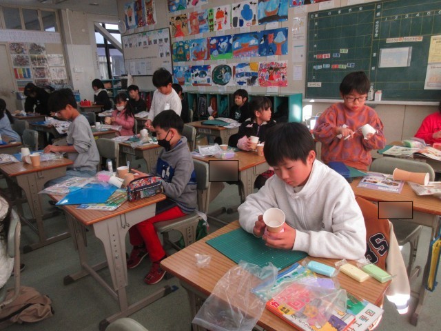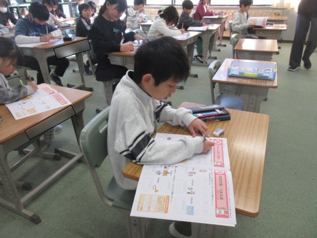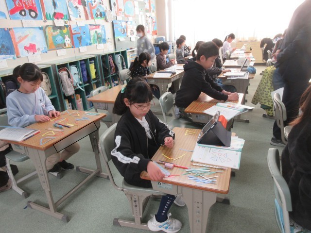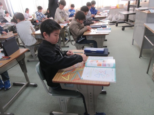 3年生は今日も元気に学習しています。1組では、国語で詩の学習やローマ字の学習をしていました。2組では、算数の三角形の学習をしていました。3組は、図工で、空きようきのへんしんの学習をしていました。3学期もしっかりと学習できるようサポートしていきます。