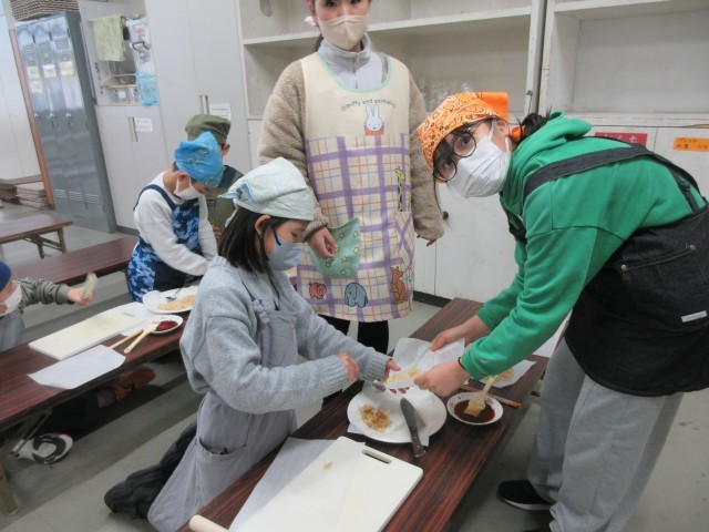 本日は、来たる「感謝の会」に向けた調理実習を行いました。今回、子どもたちが挑んだのはお米料理のフルコースです。香ばしさがたまらない五平餅、甘辛のハーモニーみたらし団子、素朴な味わい黄粉団子、カリッと食感焼きおにぎり、パリポリ止まらないせんべい、そしてなぜかお米の合間に輝く洋風の星クッキー!まさに「炭水化物・オールスター感謝祭」の様相を呈した生活室。肝心のお味は……全品、花マルの上出来! 子どもたちの「おいしい!」という笑顔が、何よりの成功の証でした。しかし、美味しいものを作るには時間がかかるもの。食べることに夢中になりすぎたのか、はたまたこだわりの強さが爆発したのか、片付けを含めて少しタイムオーバー気味になってしまいました。感謝の会本番では、今日の反省を生かしてスムーズに進める予定です。お世話になった「東楽会」の皆様へ、最高の感謝を届けていきましょう。