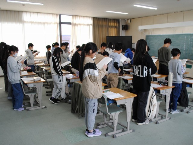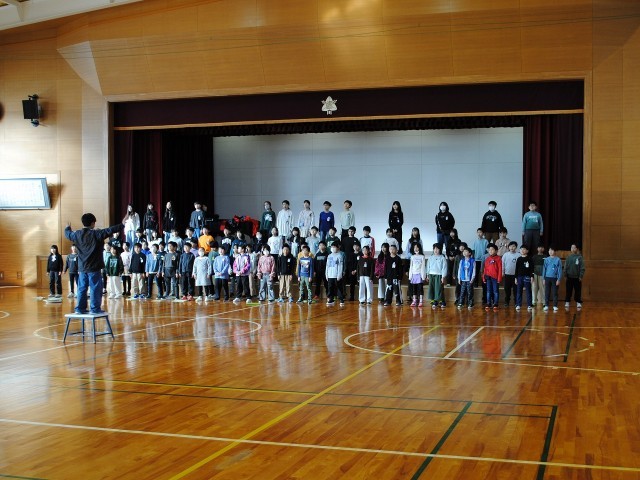 4年生は、総合学習「生きる」の学習で、「10才のつどい」に向けて、歌と群読の練習をしました。