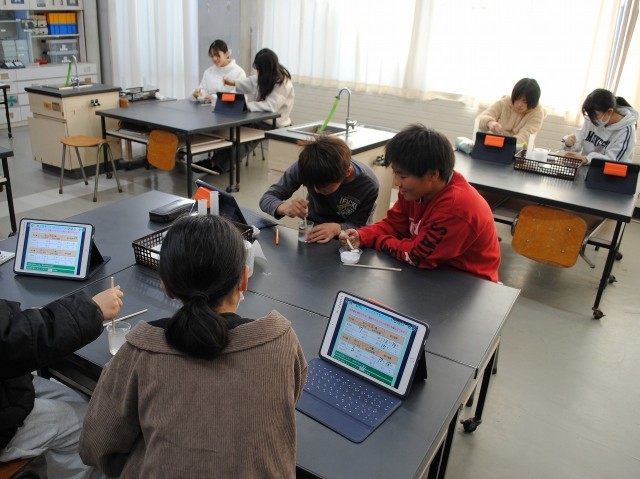 5年生は、理科「もののとけ方」の学習で、水の量を増やしたら、食塩やミョウバンが溶ける量はどうなるか確かめました。