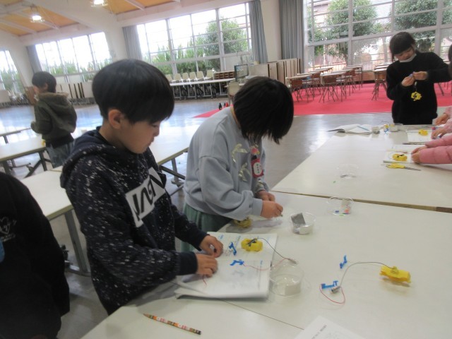 3年生の理科では「電気の通り道」の学習をしています。今日は、電気を通すものと通さないものを調べました。