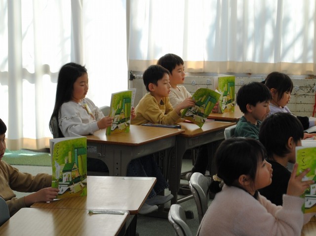 1年生は、国語「よんでかんじたことをはなそう」の学習をしています。「ずうっと、ずうっと、大すきだよ」のお話を音読した後、エルフがどんな風に変わっていったかを読み取りました。