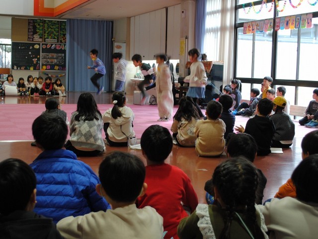 5年生は、学年合同で音楽の授業を行い、「MUTEKI★HERO音楽会」を開きました。鑑賞曲をダンスで表現したり、歌やリコーダーの発表をしたりしました。