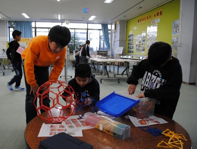 1年生は、図工で「たこ」を作っています。今日は、「たこ」に好きな絵柄をかきました。