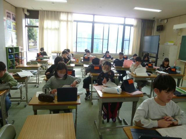 3学期も週プロに取り組んでいます。国語「理由や例を挙げて、考えを書こう」と算数「直方体と立方体」です。4年生の週プロも3回目となり、学習カードをよく読み、一人ひとり学習に励んでいます。