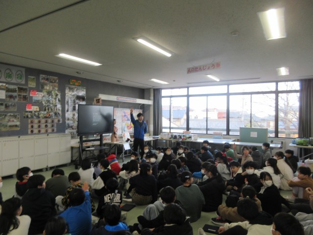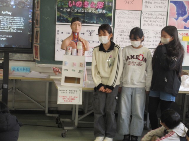5年生の週プロの学習が、ついに集大成を迎えました。ラーニングには子どもたちが試行錯誤して作り上げた立体作品がズラリと並んでいます。この日は、学習のまとめとして代表児童による発表会が行われました。 特に、理科の「復習クイズ」では、学年全員が身を乗り出しての大盛り上がりでした。よい締めくくりになったと思います。