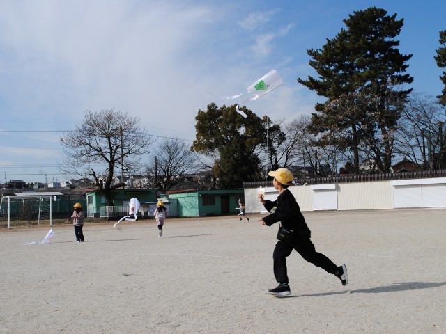 1年生は、図工の時間に作ったたこを揚げました。運動場は元気な歓声も上がりました。
