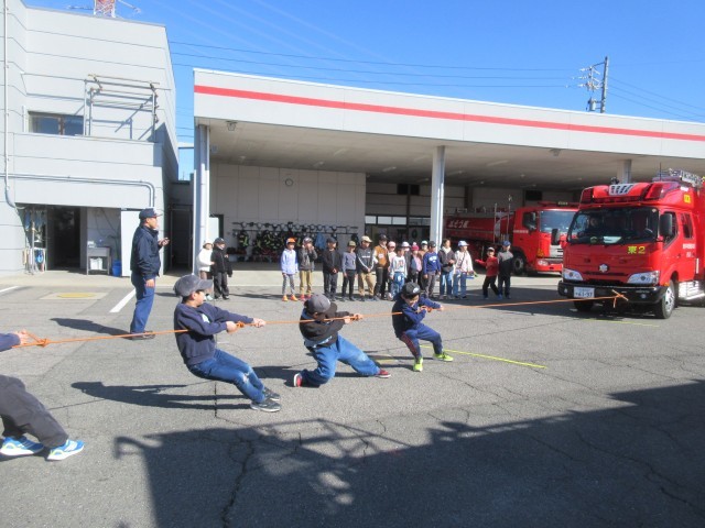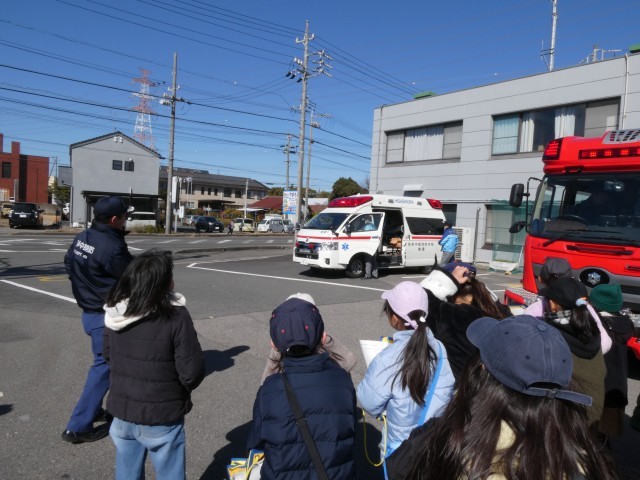 R8.2.19(木)3年 消防署見学 公開日 2026/02/19 更新日 2026/02/19 全体 社会「火事から人びとを守る」の単元で消防署見学に行きました。タンク車や救急車の見学、消防署内の見学、消防車の綱引きの体験をしました。消防署でしかわからないことをたくさん学ぶことができました。 +7 3年生
