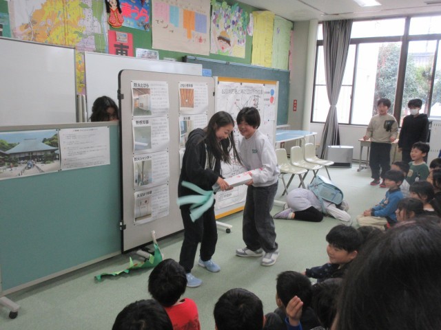 3学期の週プロのまとめをしました。発展で取り組んだものの発表や0問題の答えの確認などをしました。発展の取り組みでは、ポスターやリーフレット、図鑑、劇などさまざまなものがありました。