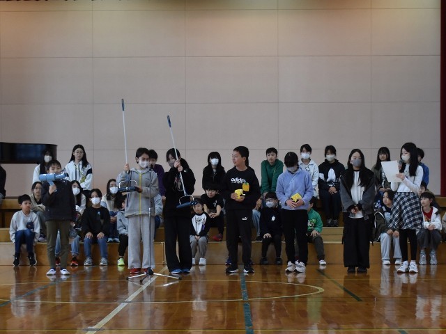 「SDGs環境省の自治」からは、ベルマークの点数により購入した携帯用拡声器や掃除道具の紹介がありました。