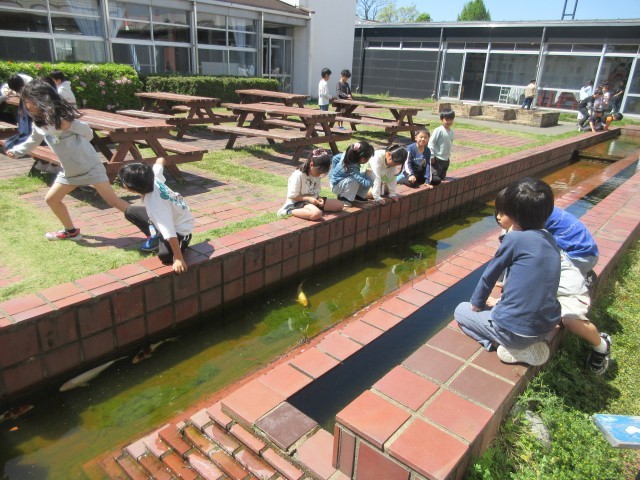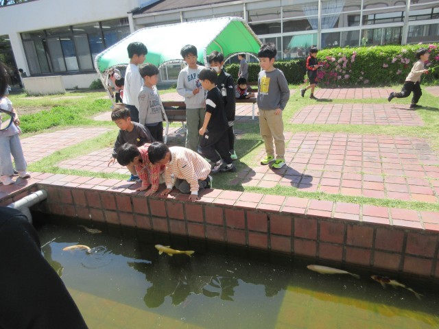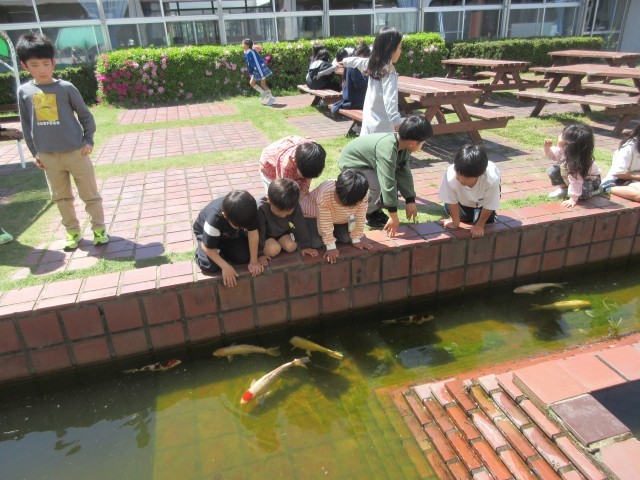 グラウンドへは出られない大放課、子どもたちの賑わいは中庭へと移っていました。ふと覗けば、池のほとりに集う小さな背中たち。その視線の先には、悠々と、けれど力強く水を切って泳ぐ鯉の姿。「あ、こっちに来た!」そう言って笑う子どもたちのまなざしは、水面よりも澄み渡り、きらきらと光を湛えています。 何気ない休み時間のひとコマが、まるで一編の詩のように美しく感じられたひとときでした。
