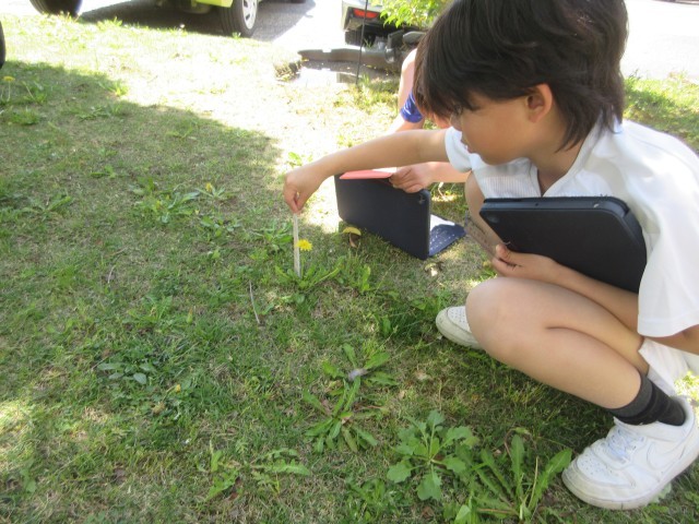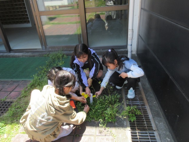 3年生、初めての理科の授業がありました。今日はたんぽぽの観察をしました。