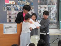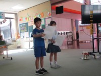 朝のつどいで表彰を行いました。また,校長からは地域で活躍するおがわっ子の紹介がありました。地域の様々な行事に率先しておがわっ子が参加していてとてもうれしいです。