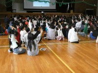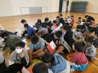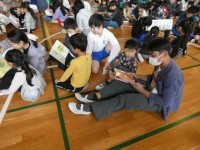 また、クイズの後は、ペアで本の読み聞かせを行いました。体育館で一斉に行う様は壮観ですね。