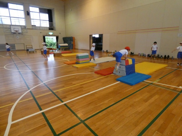 跳び箱の段数も少ないですね。皆、こわがらずにチャレンジしていこう。