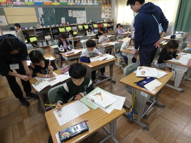 今回の学習は、自由進度学習で進めています。学びのプリントと教科書を利用して、それぞれのペースで進めています。今日は、石浜西保育園の先生が学習の様子を見学しにみえました。