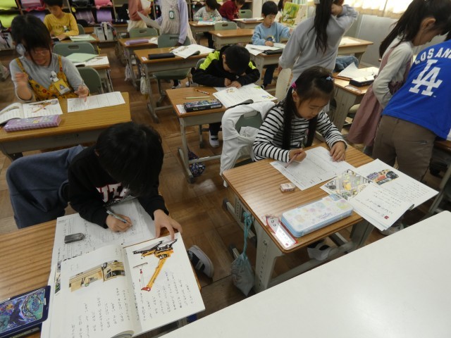 国語科では、いろいろな自動車を比べながら、その働きや違いについて学習を進めています。