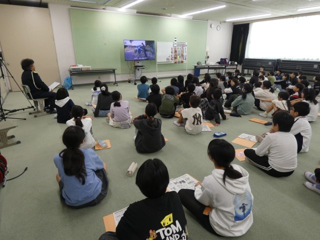 5年 交通教室 公開日 2025/10/27 更新日 2025/10/27 お知らせ 5年生が交通教室を行いました。 交通指導員さんに、自転車の乗り方等を教えていただきました。また、ビデオで自転車利用のマナーや交通ルールについて教えていただきました。