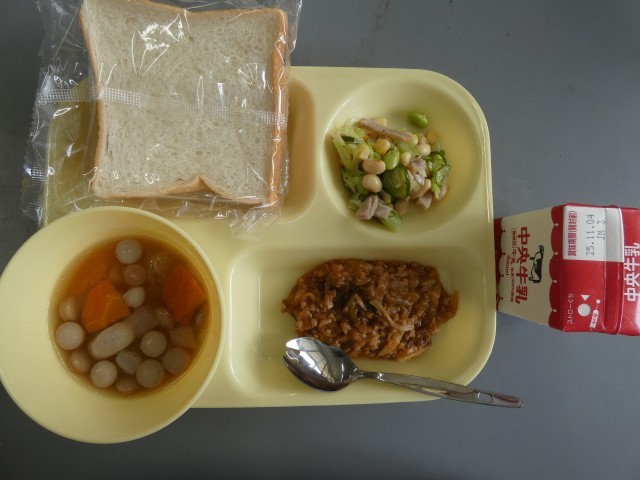 今日のメニューは、スラッピージョー、まめまめサラダ、ポトフ等です。