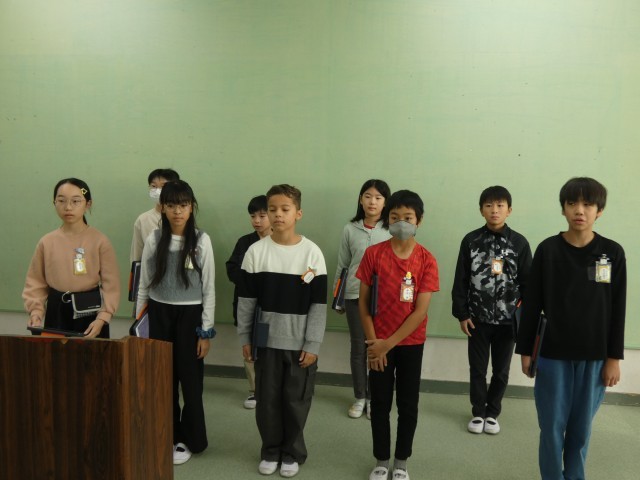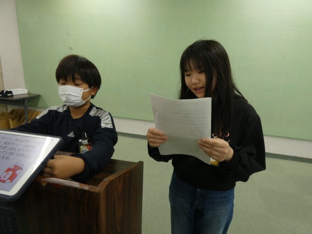 TV朝会では、給食委員会から給食週間の連絡、そして総務委員会からはペア清掃についての連絡がありました。