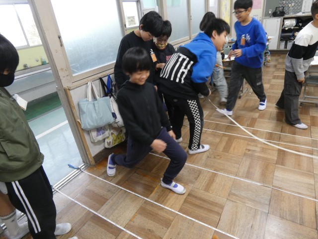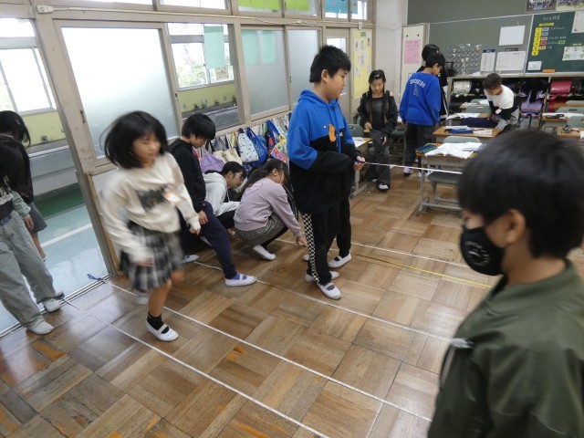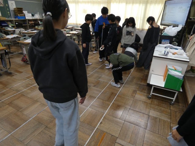 今日は、直線を何回か歩いて、その平均から、自分のおおよその歩幅を測るようです。