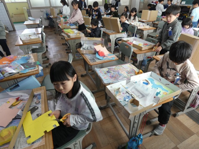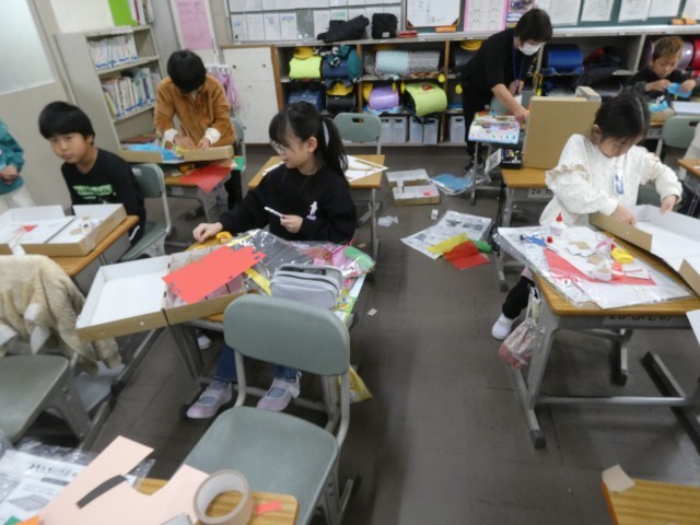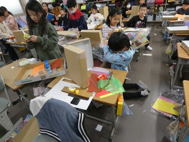 図画工作科で、「ともだちハウス」の制作に取り組んでいます。