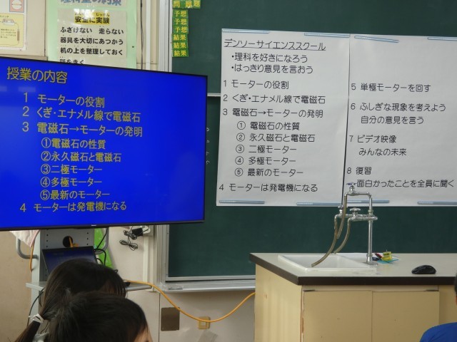 理科の出前授業でデンソーの方に来ていただきました。内容は「モーター」です。