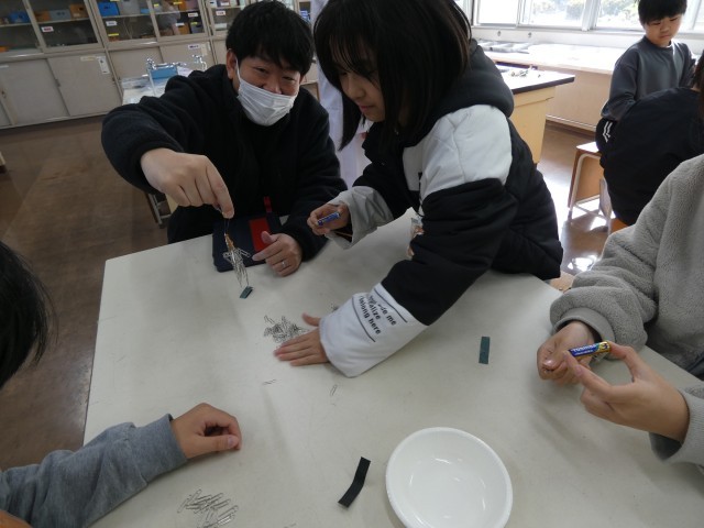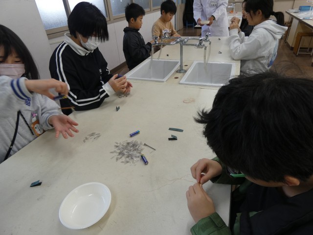 身近にあるモーターやその役割、そして、ニクロム線を使った電磁石など、さまざまな話と実験をしていただきました。