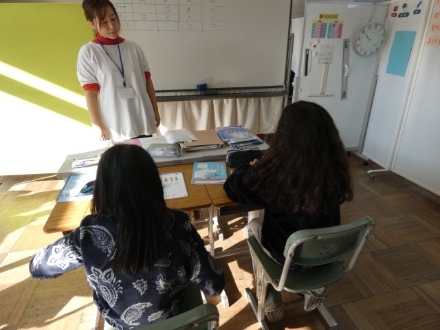 日適3年は、国語科で復しゅうプリントに取り組んでいます。イラストの場面を参考に漢字を使った文章をかきましょう。