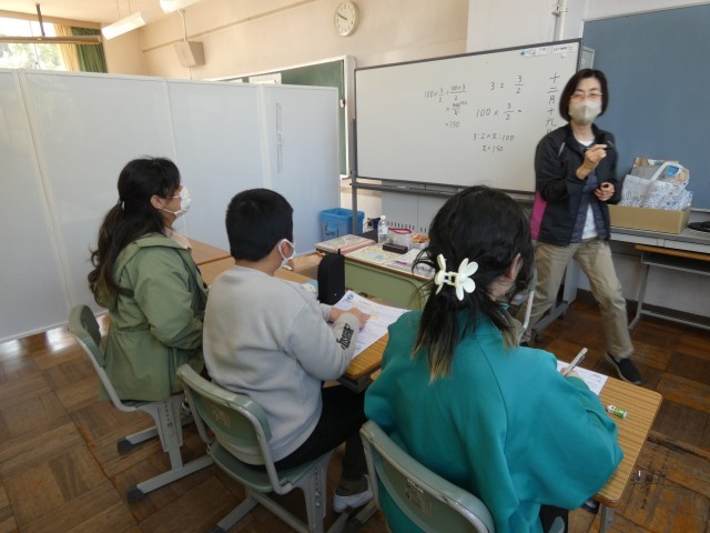 日適4年は、算数科です。「わたしはだれでしょう」のようなクイズを表に整理して、正解をもとめるようです。