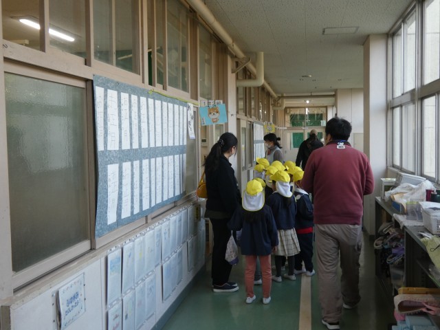 運動場の遊具を見学した後、1年生の教室で学習の様子を見学したり、図書コーナーなどの特別教室の見学をしたりしました。