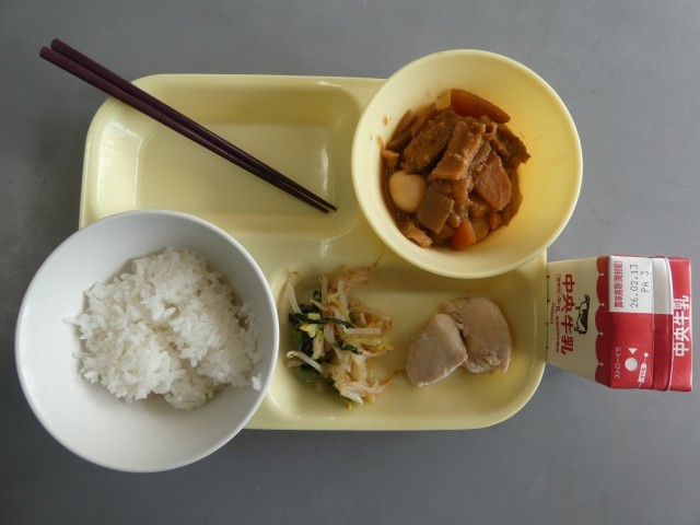 今日のメニューは、鶏肉の塩麹焼き、味噌おでん、白菜のおかか和え等です。