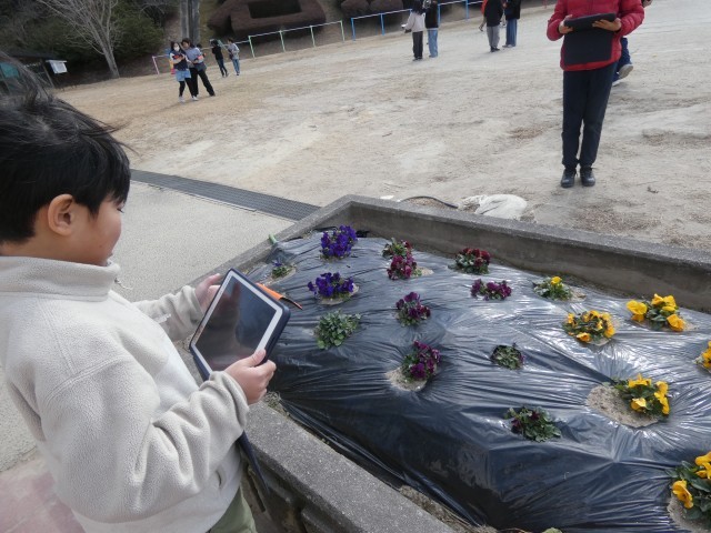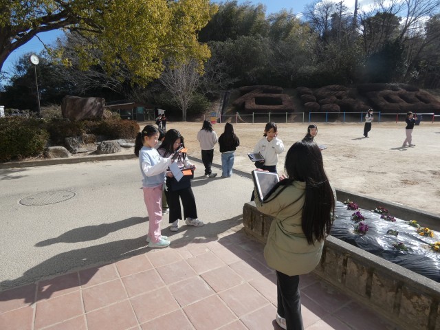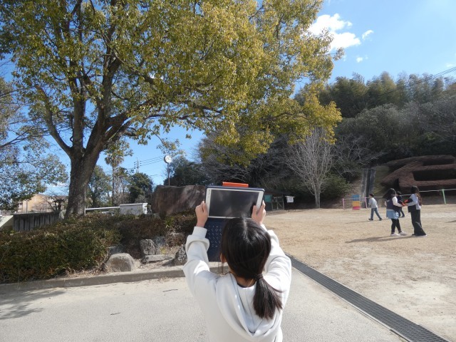 理科の学習で「冬の様子」を探して撮影しているようです。