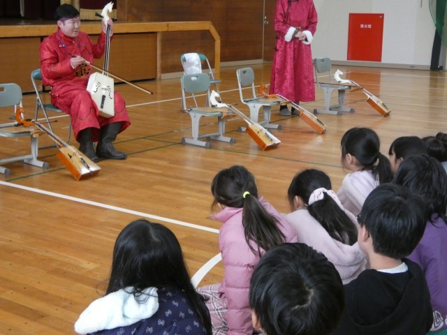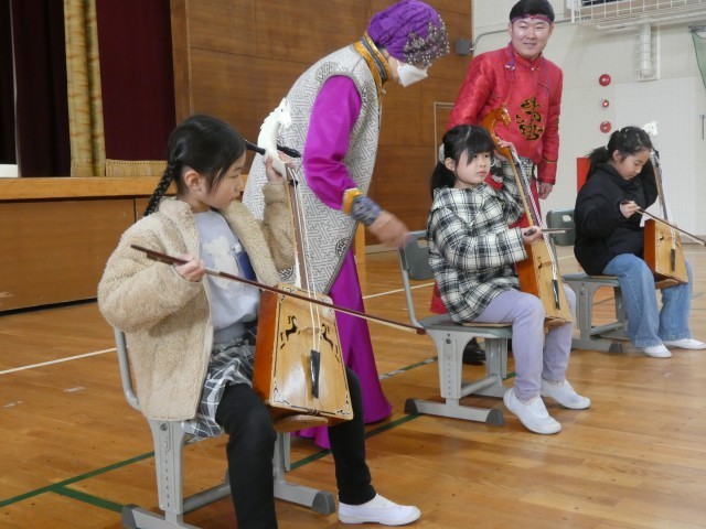国語科「スーホの白い馬」の学習の一環で、出前授業「サランモル」を行いました。