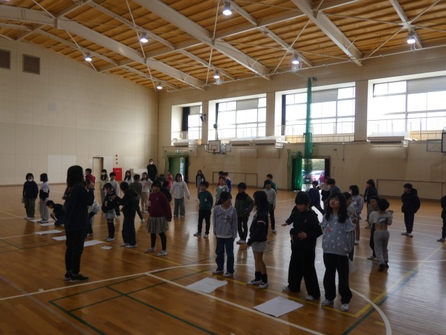 体育館では、6年生を送る会に向けて3年生が出し物の練習をしていました。どのようなものかは本番までのお楽しみですね。