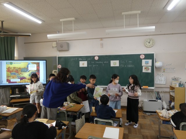 3年外国語活動 公開日 2026/02/26 更新日 2026/02/26 学校 「Who are you?」を使った英語劇をするようです。 子どもたちは、それぞれが扮する動物のお面を作っていました。どのような劇になるのか楽しみですね、
