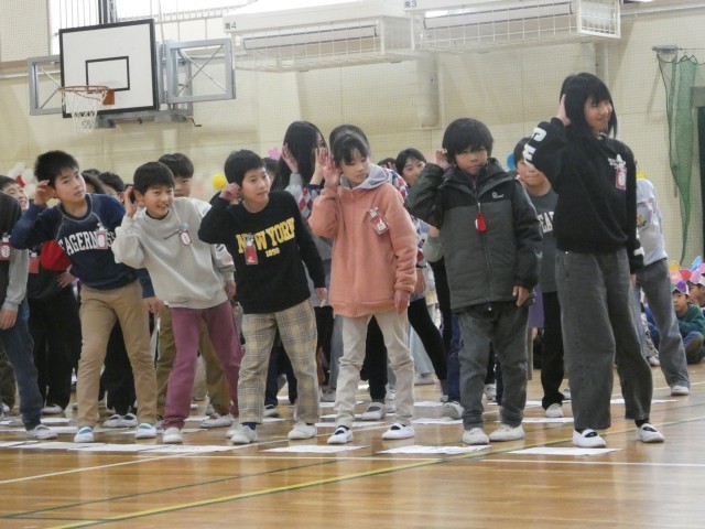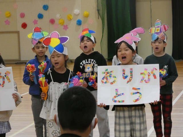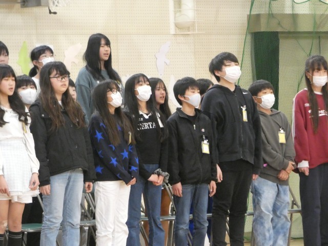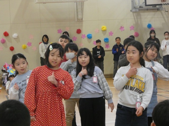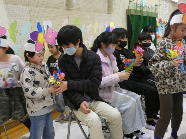 1年生から5年生までが6年生に感謝の言葉や歌を届けました。