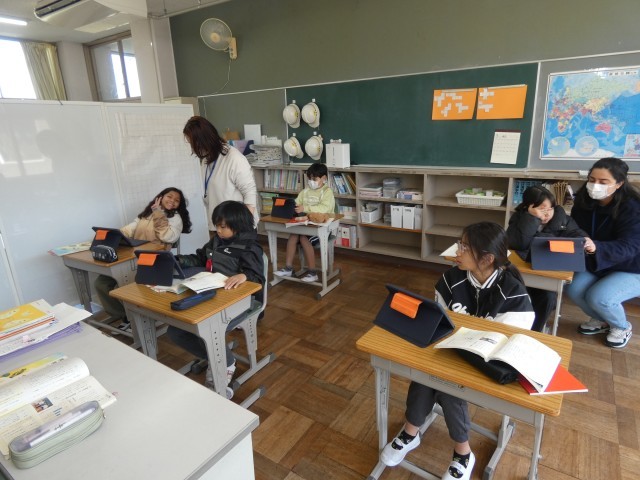 4年生は、アンケート結果を基に分かったことをまとめています。アンケートは一日の生活についてです。