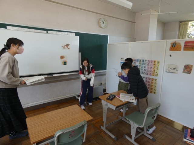 5年生は「大造じいさんとガン」の一場面を動作化して、あらすじを確認していました。