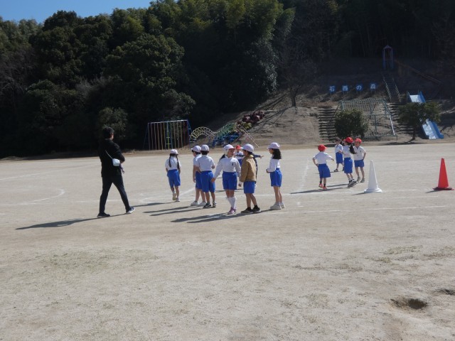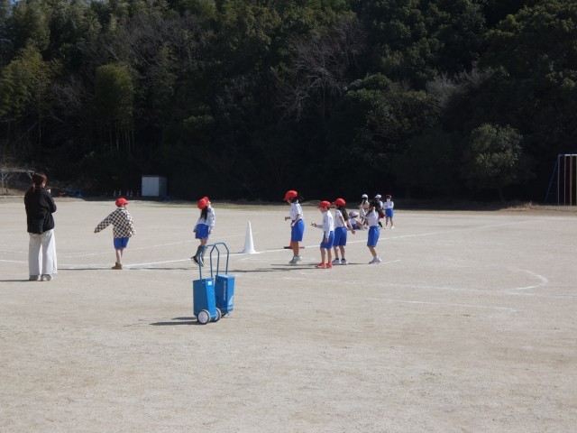 ボール蹴りゲームをする1年生の子どもたちも、しっかり汗をかいているようです。