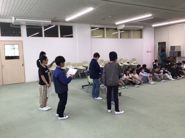 今年度初の朝会です。委員長と学級委員の任命をしました。児童会と放送委員が頑張って準備をしてくれました。任命された人たちの返事はとても立派でした。さすがですね。