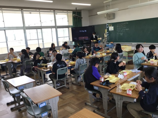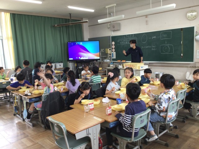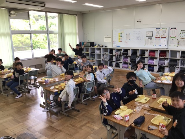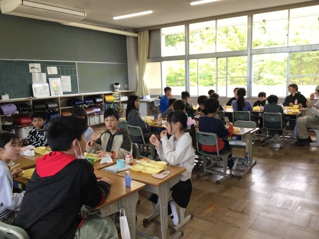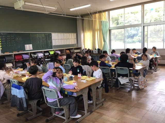 さすがに6年生の教室はゆったりと食べていました。2年生も笑顔です。今日の給食も美味しかったです。ごちそうさまでした!