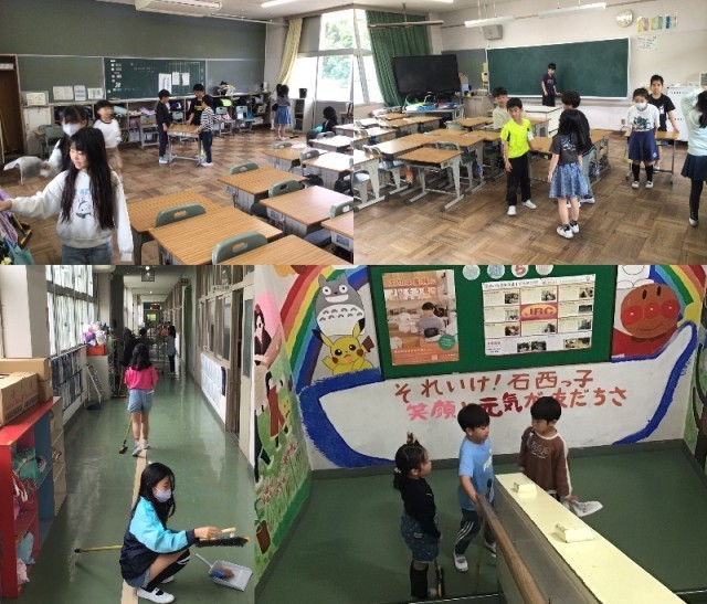みんなで協力して掃除をしています。