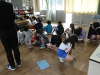 今日は、各自で「食べ物」「服装」「住居」等を調べていました。住居のコースの子どもたちは模型を作っているようです。