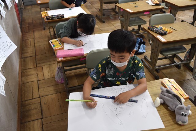 1年生が国語図工「お話だいすき」の制作。