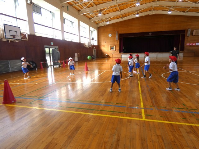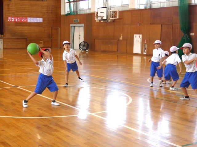 1年生が体育でドッジボールをしていました。